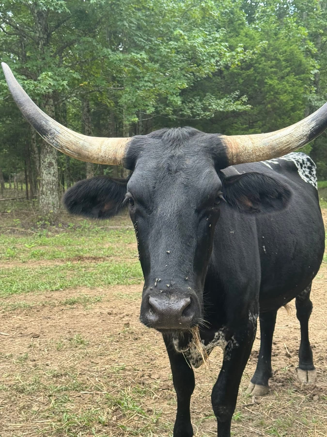 Oaklee is a beautiful true black with white young cow. Her horns have started to roll back and should look similar to her dam. She has given us nice, colorful healthy calves each year Oaklee is a very tall cow and has been exposed to our partnership bull, PCC PayPal. There is a very good chance this calf will be grulla